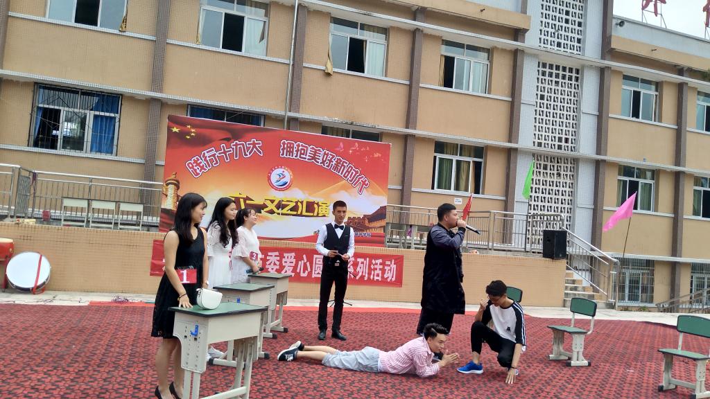 首先,各班按照安排迅速整齐的入场就位。由安居会龙学校的校长致辞并宣布活动正式开始,各班级陆续上台演出,用不同的方式诠释了主题,表达了对美好新时代的向往。其中幼儿园的小朋友表演生动,舞姿活泼,再加上乖巧玲珑的模样,引起了全场热烈的掌声。当然,我系志愿者表演的小品《非诚勿扰》堪称经典,表演夸张风趣,含义深刻,使观众深深的被吸引,十分精彩。活动接近尾声,志愿者给小朋友们发放糖果,与小朋友互动。最后,参加本次活动的志愿者及老师一起合影留恋,活动圆满结束。